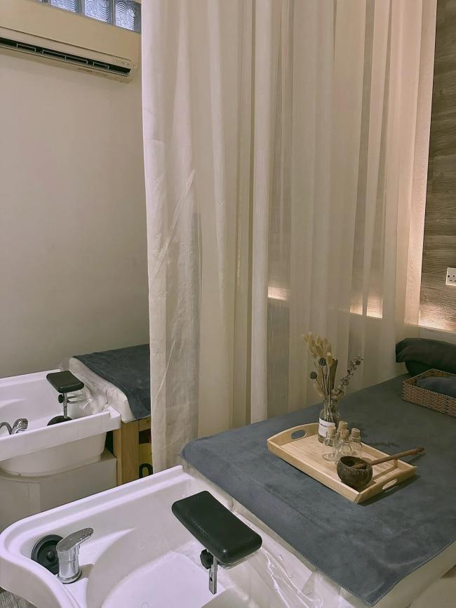 - Gội đầu dưỡng sinh:là chăm sóc tóc và da đầu một cách đặc biệt, kết hợp với việc massage vùng đầu, vai gáy, cổ, lưng,…làm sạch da đầu và tóc với các dầu gội thảo dược từ thiên nhiên như sả, bồ kết, vỏ bưởi, quế,…
